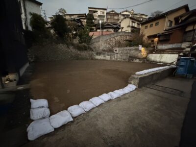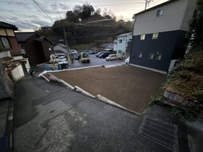 建物・基礎・瓦礫が完全に撤去され、敷地の形状が見えてきました。