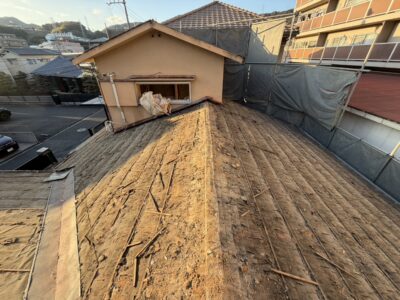 瓦や下地材を一枚ずつ剥がしながら進めることで、